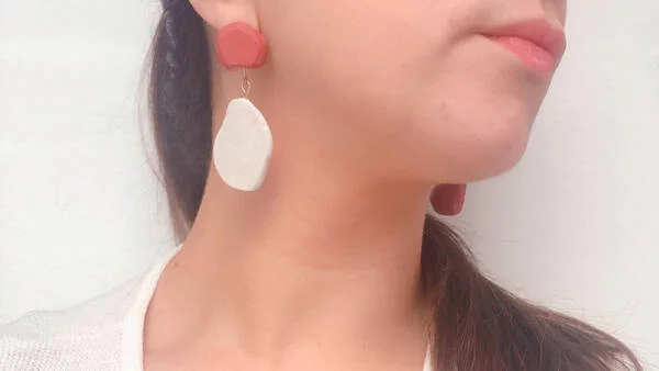 Trabajo con materiales súper nobles como la resina y la arcilla polimerica, que no solo brinda infinidad de posibilidades sino que es un material muy liviano y cómodo de llevar. Tanto las argollas como los pasantes son de acero quirúrgico.